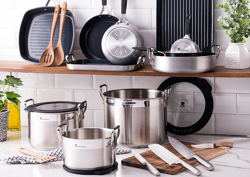 Master es el kit de supervivencia para los foodies más exigentes. Con la serie de cuchillos Master de Masterpro, optarás por el mejor rendimiento y los mejores resultados. Hojas forjadas y extraordinariamente afiladas, con doble refuerzo, que distribuye el peso a ambos lados del mango. Los cuchillos se sujetan cómodamente en la mano y están perfectamente equilibrados garantizando una experiencia de corte mejorada.