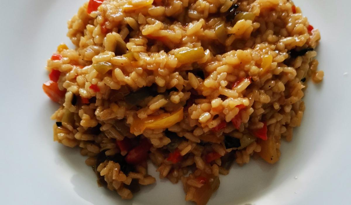 Ponemos en el vaso el accesorio “Cuchillas”.Añadimos 1 cebolla, 1 pimiento verde, 1 pimiento rojo, 1 pimiento amarillo y 200gr de setas o champiñones