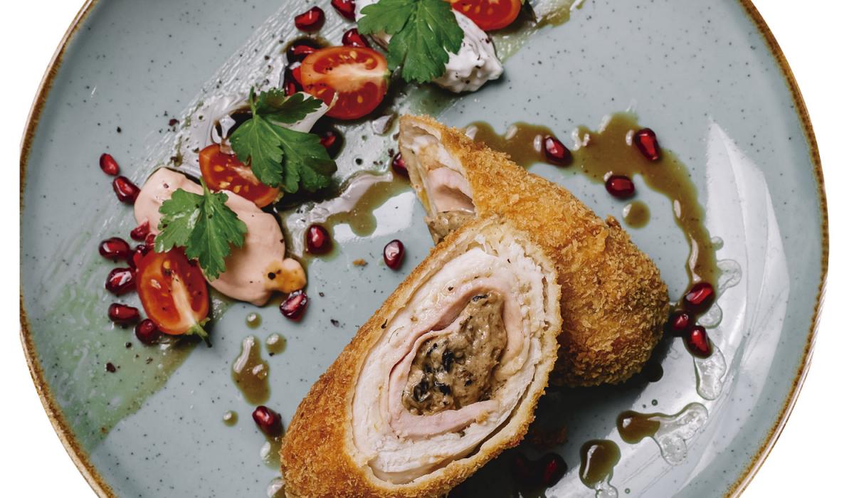 Espalmamos los filetes de lomo, los salpimentamos, los cubrimos con una loncha dequeso y los rellenamos con un picadillo de huevo cocido, jamón serrano, tomate secoenrollamos y los empanamos , ósea los pasamos por harina, huevo batido y panko, loscolocamos en la rejilla niveladora pulverizaos de aceite de nuestro FryCOOK, en elprograma para ternera 15 minutos a 460 grados Fahrenheit.