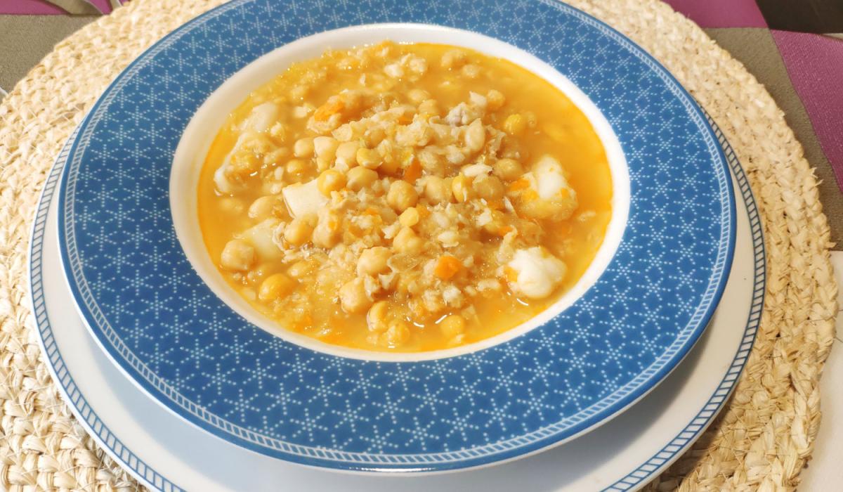 Garbanzos con sepia y gambas