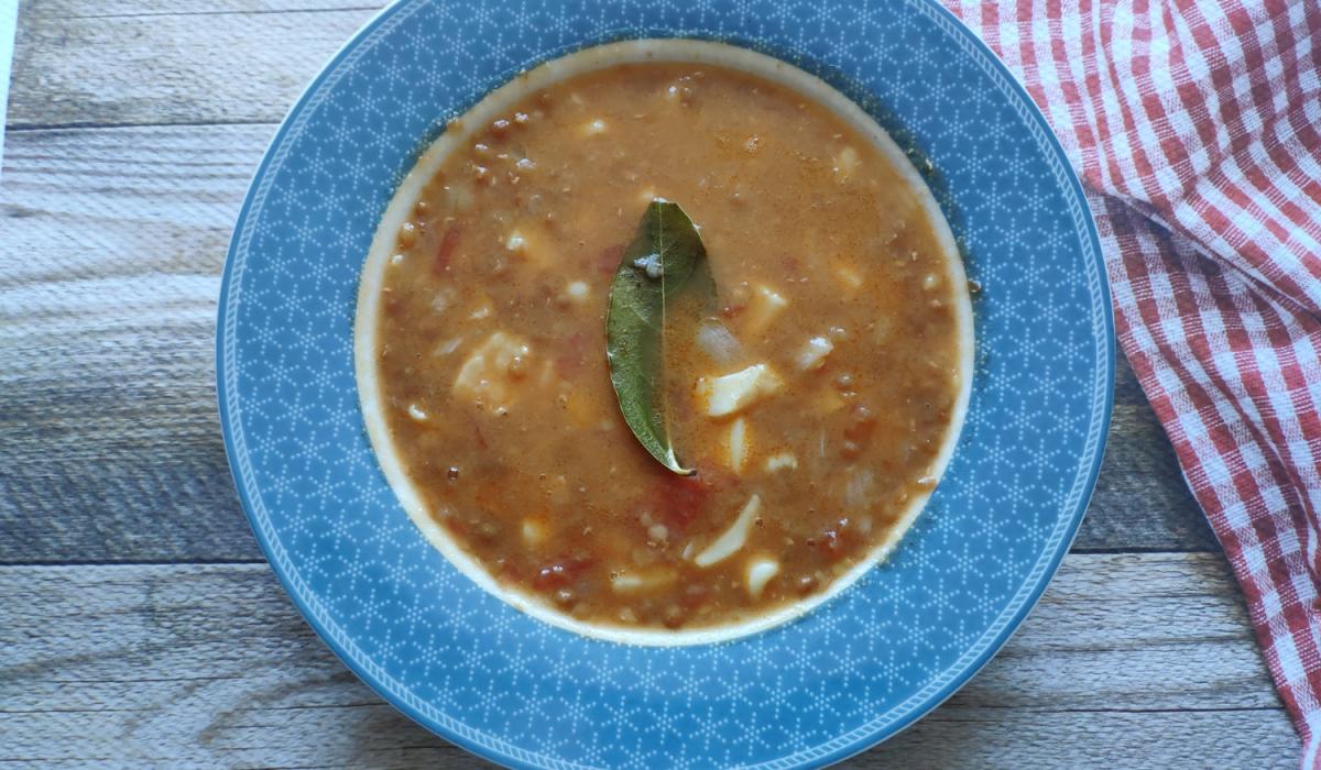 Incorporamos 400gr de lentejas escurridas, 1-2 hojas de laurel, 300gr de caldo o agua y 1 cucharada de sal.