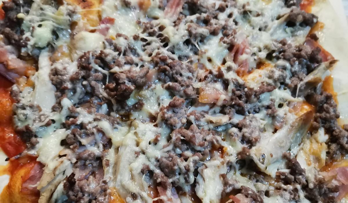 Pizza de ternera, bacon y pollo