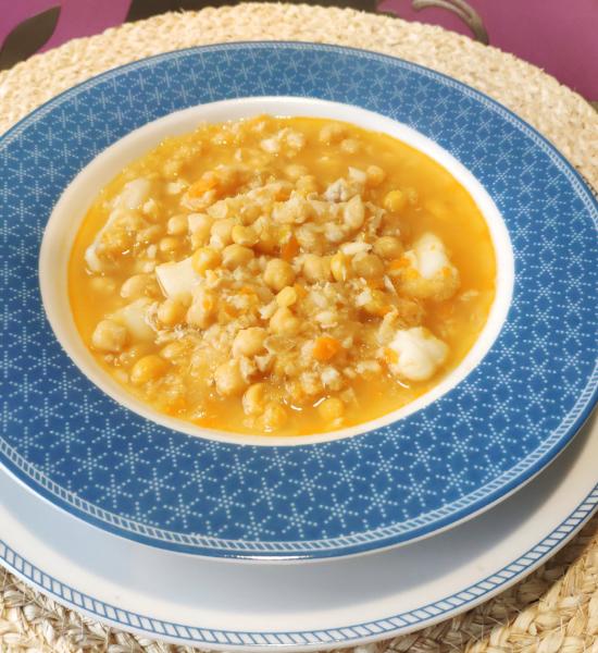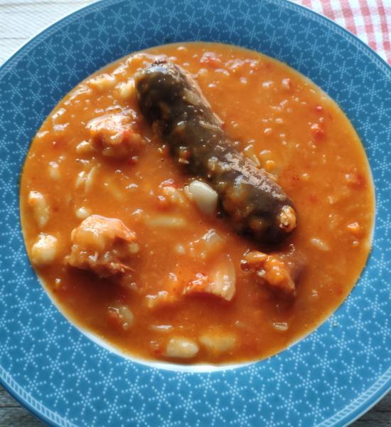 Picamos el ajo, la cebolla y los pimientos y las echamos en el FryCOOK en el programasaute-med-vegetables una vez están pochadas a nuestro gusto, añadimos la sepia en daditos, una chorradita de vino blanco, las pochas frescas congeladas, el azafrán ycubrimos con fumet, cocinamos en el programa pressure-beans-med del FryCOOK enuna vez cocidas a nuestro gusto rectificamos de sal.