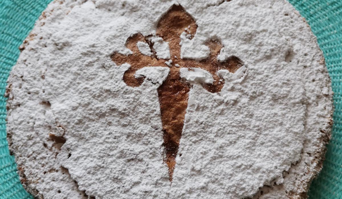 Desmolda y decora la tarta poniendo una cruz de Santiago y espolvorea con azúcar glass