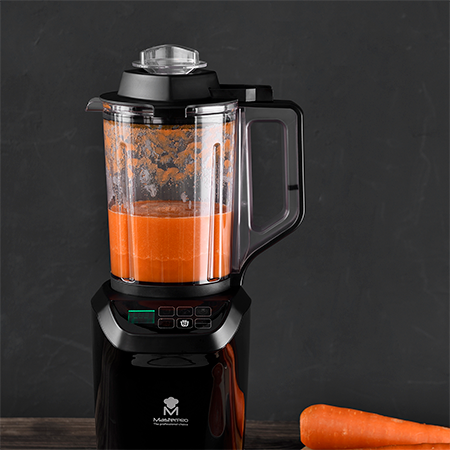 Ahora preparar alimentos y bebidas calientes es muy fácil gracias a la Vacuum Blender de Masterpro. Corta los ingredientes añádelos al recipiente, selecciona el programa de batido con calor y prepara sopas, purés y otras comidas calientes y cremosas sin esforzarte apenas. La Vacuum Blender de Masterpro calienta y cocina hasta los 70ºC.