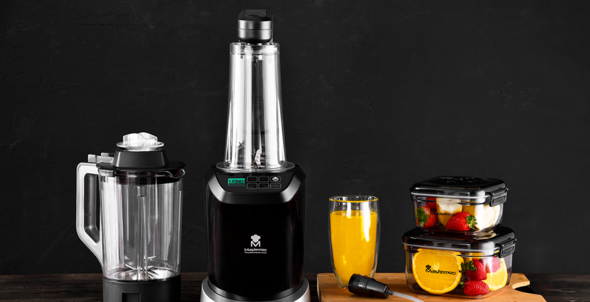 El Vacuum Blender de Masterpro sustituye a tu olla, sartén, envasadora al vacío, batidora, picadora, trituradora, exprimidor… Esfuérzate al mínimo sin renunciar a un estilo de vida saludable, requiere mínima preparación previa lo que la hace ideal si eres de los que tiene poco tiempo para cocinar.